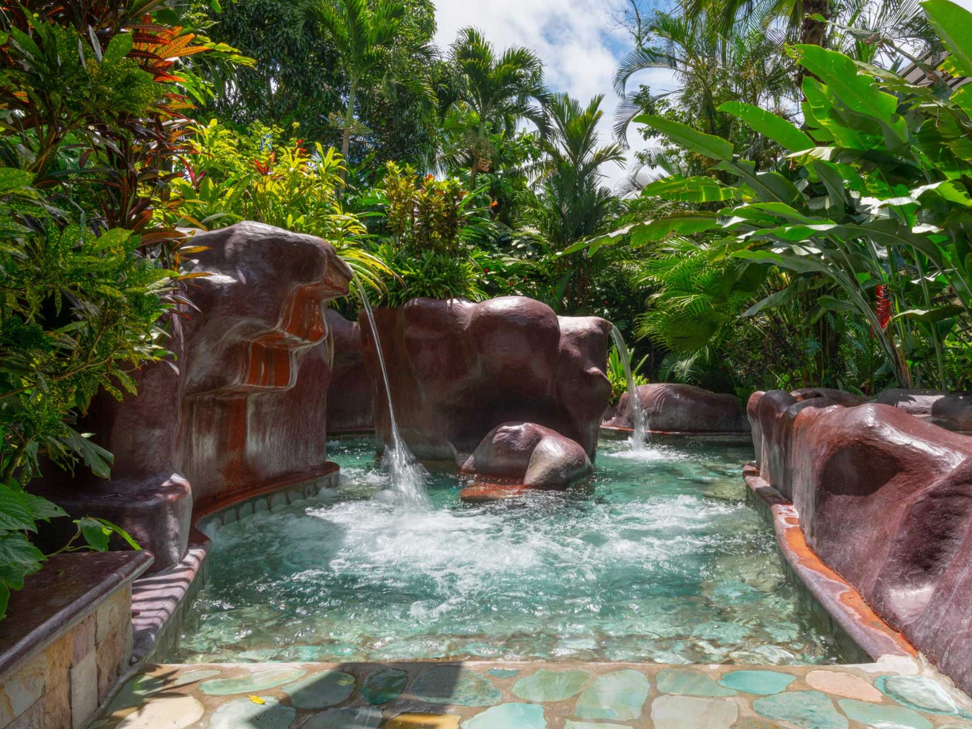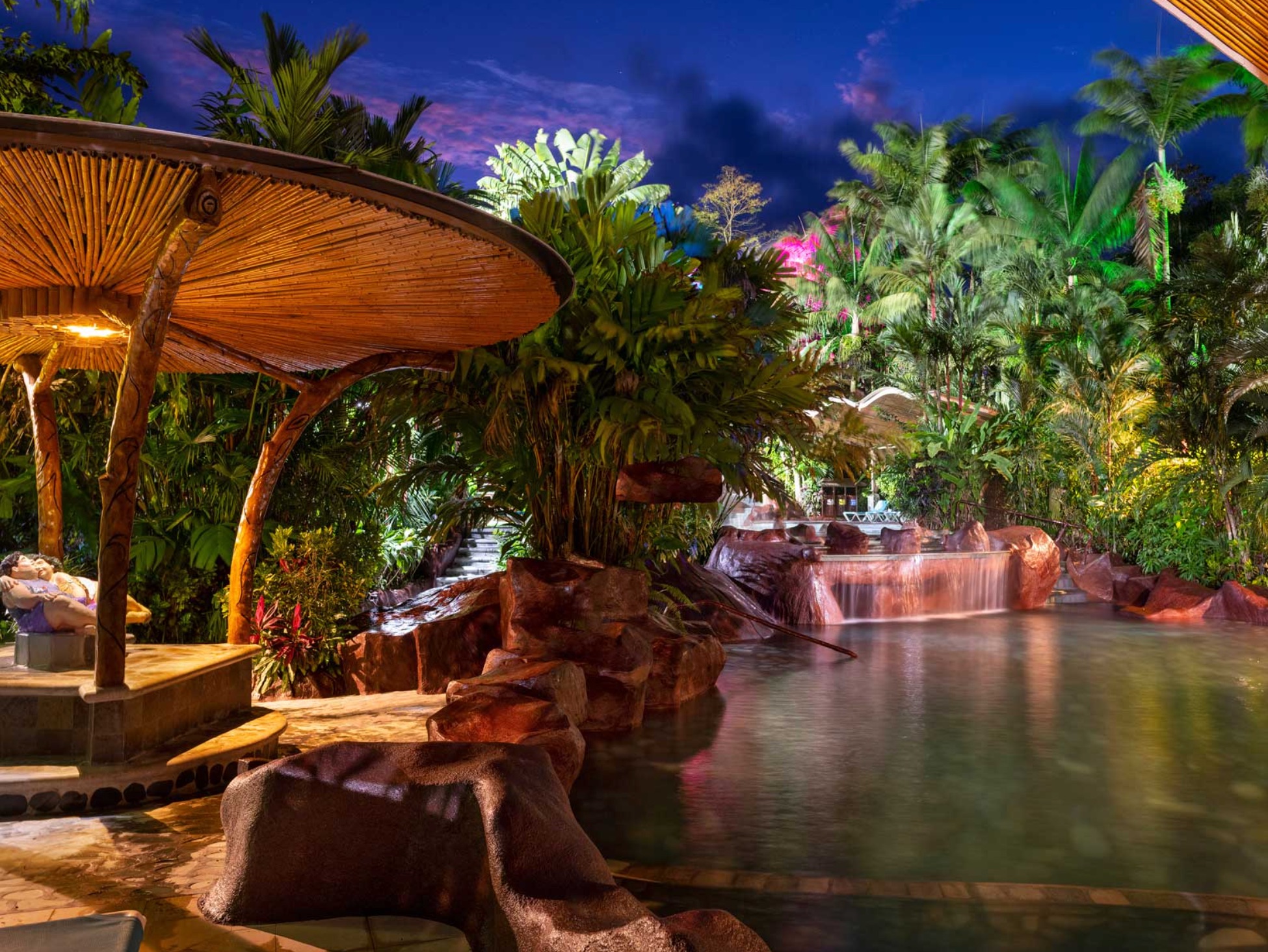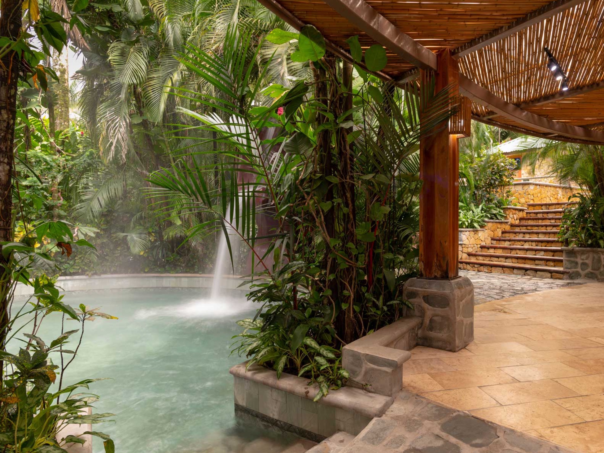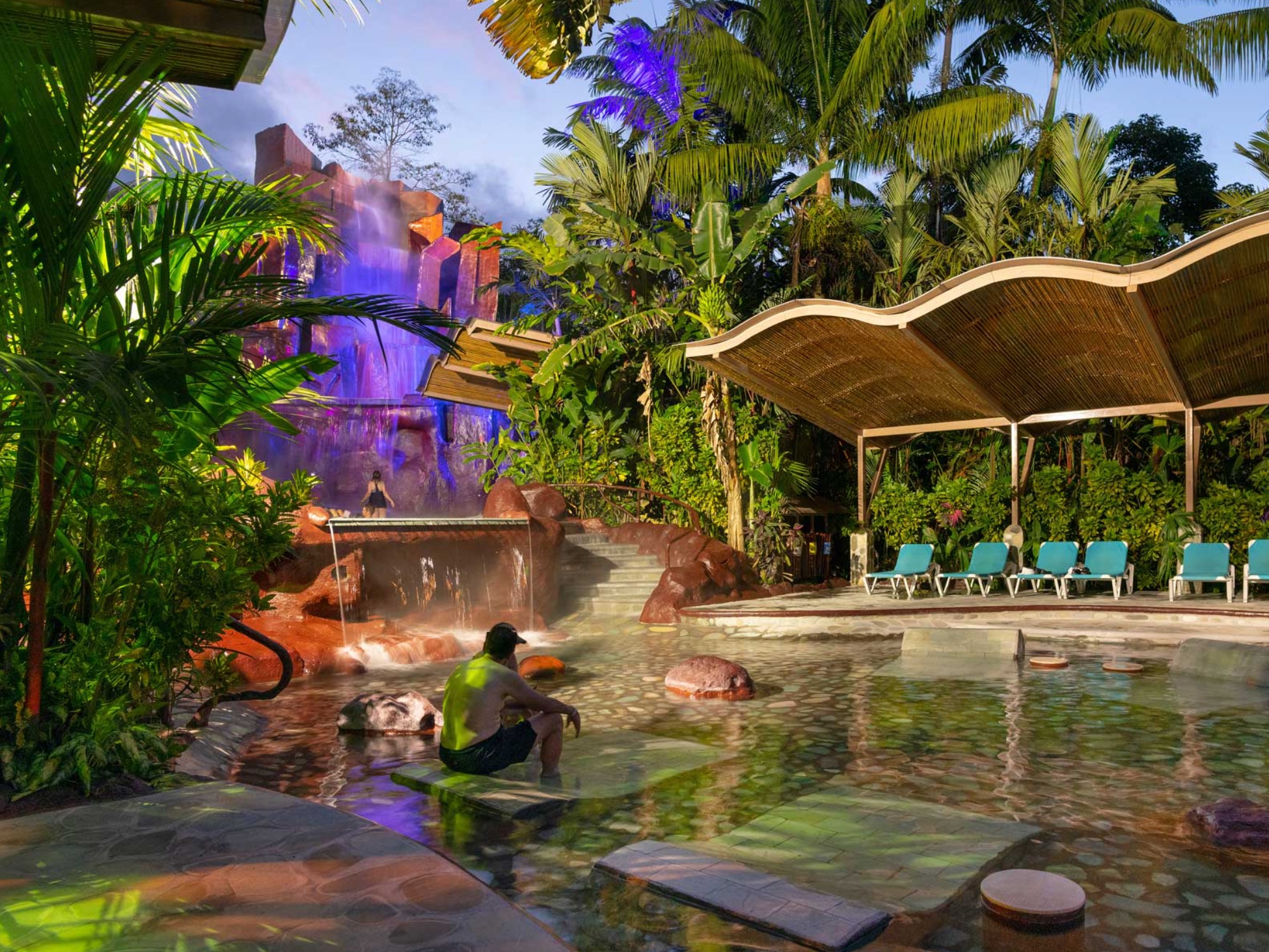 25 Thermal Water Pools Amidst the tropical rainforest, these 25 thermal water pools are filled by crystalline waterfalls, for the use and enjoyment of al visitors. The purity of the water will make you feel like you are floating in a oasis of healing, with birds singing all around and the sound of falling water that invites you to relax and recover your wellness and quality of life.